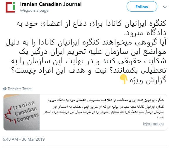 معرفی نه نفر از دست اندرکاران آی سی جی، و انتشار بخشی از صورتجلسات هییت مدیره، گزارش مالی سال 2017 از نتایج مثبت و فوری این اقدامات قانونی اند. بالاخره مشخص شد که محسن خانیکی، سرپرست کمیته مشارکت جمعی فعلی، و مهران فرازمند، دبیر سابق هییت مدیره، سردبیران آی سی جی میباشند. بیژن احمدی از اعضای فعلی هییت مدیره، مهدی صمدیان، پارسا البهشتی، الهام اسلامی، احسان حمیدی، و پوریا زراسفند نیز با این نهاد همکاری دارند. آی سی جی از محتوای نامه وکیل شهرام تابع محمدی سخنی به میان نیاورده است ولی از زمان دریافت این نامه حملات شدیدی را علیه شهرام از طریق انتشار مطالب متعددی در صفحه فیسبوک و توئیت خود آغاز کرده است. همچو سخنگو و مدافع کجروی های کنگره به انتشار مطالب منفی و مخربی علیه شاکیان که از اعضای قدیمی و شناخته شده کنگره میباشند پرداخته است. آنچه میبایست باعث نگرانی بیشتر بسیاری از ما، بخصوص والدین نوجوانان کامیونیتی باشد، مورد پارسا، دانش آموز داوطلبی میباشد که در ماه مارچ 2018 به گروه نوجوانان کنگره پیوسته است. جای دارد که شعله خلیلی، سرپرست کمیته فرهنگی که در معرفی برنامه انتخاباتی خود از فعالیت در رابطه با مشکلات و بحران های جوانان در کامیونیتی سخن میگفت، به صورت جدی به بررسی این مورد بپردازد. با مراجعه به صفحه فیسبوکی پارسا، میتوان شاهد تغییرات اساسی در نوع فعالیت های این دانش آموز شد. از ماه آپریل، ایشان به یکی از فعالین در کمپین انتخاباتی سمن طبسی نژاد، که از اعضای هییت مدیره کنونی میباشد مبدل میگردد، در انتشار مطالب کنگره و آی سی جی حداکثر تلاش را کرده، و در نهایت به آی سی جی پیوسته و مقالاتی را منتشر میکند. متوسل شدن به مراجع قضائی برای به دست آوردن حقوق، مقابله با تهمت، و کجروی ها را میتوان یکی از مثبت ترین حرکات در چهل سال حضور ما مهاجرین در کانادا دانست. وقایع نشان میدهند که چنین حرکت ساده ای نیز، نیاز به آمادگی دارد که انگاری در کامیونیتی ما تا کنون وجود نداشته است. از نظر نمادین این دو اقدام قانونی بسیار پر ارزش میباشند. این عزیزان نه تنها برای منافع شخصی به چنین فعالیتی نپرداخته اند، بلکه به عکس تحمل هزینه های سنگینی را از نظر زمانی، مادی و روانی پذیرفته اند. نتیجه این اقدامات قانونی هر چه باشد، میتوان از هم اکنون آنرا به عنوان پیروزی و اولین قدم ها در جهت فرهنگی سازی به حساب آورد. جای دارد که ما نیز به هر گونه که برایمان امکان پذیر است، بخصوص کمک های مالی، نه تنها از آنها قدردانی کرده بلکه حق طلبی، عدالت خواهی و قانونمندی را حمایت کنیم. اینرا هم در نظر داشته باشیم که این رودرروئی، با یارگیری، مهندسی و تخلف در انتخابات، هیاهو در سوشیال مدیا، تهیه طومار، جمع آوری امضاء، نامه نگاری با دولتمردان، مصاحبه با مدیا، بسیار متفاوت میباشد. صحنه نبرد و یا کلاس درس، مراجع قضائی کانادا میباشند. یکی از طرفین با هر هدفی که پا به میدان گذاشته است، در جهت منافع جمهوری اسلامی، و دیگری در جهت سالم سازی جامعه حرکت میکنند. البته اگر قوانین رعایت و انتخابات بصورت سالمی برگزار میشدند، چنین افرادی در چنین جایگاهی قرار نمیگرفتند که مجبور باشیم به جای کمک به یکدیگر، امکانات خود را در زمین خوردن و از جای برخاستن مصرف کنیم. از آنجائیکه از جنبه های مختلف، کانادا به حومه ای از ایران مبدل شده است، بهتر است که هر چه سریعتر راه رفتن را آموخته، حرف را به عمل مبدل کرده، و خود را برای مرحله جدیدی از مهاجرت و حضور در این کشور آماده سازیم.