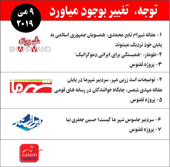 نکته ای که هر چهار سردبیر به آن اشاره میکنند سرمایه و بنیه مالی است. زمانی که سرمایه گزاری با اهداف خاصی وجود ندارد، چه سرمایه ای مهم تر از قدمت و یا تعهد خوانندگان میتواند وجود داشته باشد؟ چه ضعف هائی در نشریات قدیمی تر وجود داشته که نتوانسته اند از طرفی در خوانندگان خود تعهدی بوجود آورند و یا اینکه صاحبان مشاغل را با خود نگاه دارند؟ نشریات جدید تر چگونه توانسته اند جایگاهی برای خود یافته، در کسب آگهی سبقت گرفته و موفق ترعمل نمایند؟ اخیرن شاهد تغییراتی در همکاران نشریات بوده ایم. فرح طاهری بعد از بیش از بیست سال همکاری اش با شهروند قطع میگردد. محمد تاجدولتی و مشهود ناصری دیگر در سلام تورنتو حضور ندارند. آرش خارابی و پروانه ابراهیمی همکاری خود را با شهروند قطع کرده و مدیریت ایران استار را به عهده میگیرند. حضور و یا نقش برادران بینش در ایران استار مشخص نیست. آیا این تغییرات بیانگر مشکلات ناگفته در رسانه ها نیست؟ جز فرح طاهری که دلیل کناره گیری خود را در سوشیال مدیا با دیگران در میان میگذارد، آیا مسئولین نشریات و یا این افراد در مطلع ساختن خوانندگان احساس مسئولیت کرده اند؟ تنها موردی که پروانه ابراهیمی سردبیری خود را اعلام میکند در جوابیه به سئوال کاووس صوفی است. عدم وجود تعهد و احساس وابستگی میان، دست اندرکاران، آگهی دهندگان و خوانندگان نشریات، سه عامل ساختاری رسانه های کامیونیتی، دلایل اصلی عدم رشد آنها و در نتیجه شکل گیری کامیونیتی آنطوری که آرزویش را داریم، میباشند. عامل مهمتری نیز برای بوجود آوردن آگاهانه کامیونیتی در اذهان و حس تعلق به آن، غیر از رسانه ها نیست. با آگاهی به این مشکلات و تمایل به یاری در رفع آنها در هفت سال گذشته سعی نموده ام همچو خواننده ای با رسانه ها همکاری کنم. بدون انتظار و دریافت وجهی، خود را متعهد ساختم که بی استثناء هر هفته مقالات خود را بصورت منظم، بر پایه باور های خود نسبت به نقش رسانه ها، خواسته های خوانندگان و نیاز های کامیونیتی، برای نشریات ارسال دارم. گردش اطلاعات، شفافیت، عدم جانبداری، کنار گذاشتن تعارف ها، صراحت بیان و مستند گوئی را برگزیدم، چون بر این باورم که از نظر فرهنگی ما ایرانیان به آنها بیگانه هستیم. بیشک این نحوه عمل برای صاحبان نشریات مشکلاتی را بوجود میاورد، که تا جای امکان سعی نموده ام بدون دور شدن از اصول، منافع و معذورات آنها را هم در نظر داشته باشم. همکاری طولانی من از طرفی، و واکنش های بخشی از گروه ها که مقالات من را در تضاد با منافع شخصی و سازمانی خود مییافتند، از طرف دیگر دلایلی بر موفقیت من در رعایت اصول و خدمت به کامیونیتی بوده است. به نظر میاید که زمان آن رسیده که تغییراتی در همکاری خود با نشریات در جهت اهمیت بیشتر قائل شدن برای خوانندگان بوجود آورم. امیدوارم که سردبیران موافقت نمایند که صفحه ای از نشریه خود را به نظرات خوانندگان اختصاص دهند. اداره این صفحه را به اینجانب بسپارند که داوطلبانه و بصورت مستقل با خوانندگان در تماس باشم و نظرات آنها را منعکس نمایم. بوجود آمدن یک صفحه مشترک در نشریات مختلف، و اداره آن توسط فرد مستقلی که منافعی در آن نشریه ندارد، میتوانند از جهات مختلف تحولاتی را در جلب توجه خوانندگان، شناخت نظرات، افزایش مشارکت و تقویت جایگاه آنها، بوجود آورد. در پایان از نشریات تقاضائی دارم، که اگر نسبت به افرادی که با آنها همکاری حرفه ای و یا داوطلبانه داشته اند تعهدی احساس نمیکنند، با در جریان گذاشتن خوانندگان از تغییرات، برای خود، نشریه و خوانندگان احترام و ارزشی قائل شوند
