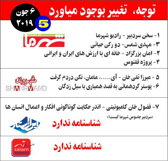 این هم پنجمین بررسی هفتگی رسانه ها که در صفحه فیسبوکی بچه های تورنتو به اشتراک میگذارم. پوستر ها در همه صفحات و بررسی ها در صفحات ذکر شد در بخش کامنت ها صورت گرفته اند. من این حرکت را با شعار "توجه، تغییر بوجود میاورد"، با هدف بوجود آوردن تغییرات در رسانه ها، بخصوص اینکه خوانندگان بتوانند جایگاهی در رسانه ها که همگی وابسطه به آگهی های تجاری هستند، پیدا کنند آغاز کرده ام. در همین مدت کوتاه متوجه شدم که کار بسیار جالبی میباشد و میتواند به پروژه های بزرگتری مبدل گردد. مهمتر از آن اینکه از هم اکنون حس میکنم که در نگرش من نسبت به رسانه های تغییراتی بوجود آمده است. مطمئن هستم که اگر این حرکت با مشارکت تعداد بیشتری از افراد با نگرش های مختلف صورت بگیرد وسیعتر و غنی تر هم میشود.