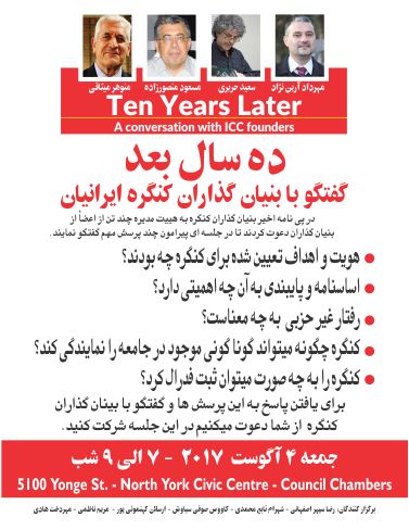 اگر برگزارکنندکان با دعوت از بنیان گزاران و انتخاب عنوان "ده سال بعد" نگاهی به گذشته دارند، ما ده سال آینده را از یاد نبرده و با فعالیت هایمان بیشتر آنرا در نظر داشته باشیم. اگر برگزارکنندکان به احترام و در رابطه با نامه بنیان گذاران این گردهمائی را برگزار میکنند، ما به آن همچو جشن ده سالگی این نهاد بنگریم. آن را موقعیتی بدانیم که موافق و مخالف کدورت های گذشته را برای مدتی هر چقدر هم کوتاه فراموش کرده، و یکبار دیگر قدمی به سوی هم برداریم. تجربه ده ساله گذشته را بکار گیریم و تا جای امکان از آنچه باعث رودروئی ما میشود بپرهیزیم. به عنوان اولین توافق جمعی هفته اول ماه می را سالروز تولد این نهاد دانسته، دراین گردهمائی آنرا به رسمیت شناخته و اعلام کنیم. به همین مناسبت هر ساله به مدت هفت روز قبل از برگزاری مجمع عمومی به اطلاع رسانی و گسترش این نهاد بپردازیم. امیدواریم که برگزار کنندگان این گردهمائی که چهار تن از آنها در برگزاری مراسم حمایت از سعید ملکپور نیز شرکت داشته اند یک نکته پر اهمیت را از یاد نبرند. که برنامه هائی همچو حمایت از یک انسان در بند، و یا بررسی فعالیت های نهادی همچو کنگره ایرانیان، هر چقدر هم موفقیت آمیز اجرا گردند اگر به یک جریان مبدل نشوند و ادامه پیدا نکنند باید آنها را نیمه کاره و رها شده دانست. آنچه در این دو برنامه مشترک میباشد، گردهمائی و گفتگو است. چه باید کرد که این گردهمائی ها و گفتگو ها ادامه پیدا کرده و مبدل به فعالیت هائی شوند که به همراه خود تغییراتی را نه تنها در جامعه بلکه در تک تک افراد بوجود آورند؟ بی شک سهیم کردن و امکان سهیم شدن را بوجود آوردن یکی از راز های موفقیت فعالیت های جمعی میباشد. همان قدر که موفقیت یک برنامه به میزان مشارکت افراد بستگی دارد، مشارکت افراد نیز به میزان آمادگی برگزارکنندگان برای پذیرش دیگران با نظرات و خواسته های متفاوت است. هر چقدر هم که محدودیت هائی برای برگزاری این گردهمائی وجود داشته، و یا اینکه برنامه ریزی های شده باشد باز امید است که برگزار کنندگان به پیشنهادات افراد و خواسته های آنان توجه کنند. از آن نظر که مخاطب نامه بنیان گزاران هییت مدیره کنونی بوده و موضوعات مطرحه در رابطه با فعالیت های اخیر آنها میباشد، دعوت و تبادل نظر با آنها قبل از این گردهمائی به نظر الزامی میاید. از طرف دیگر مشکلات این نهاد به موارد مطروحه در این نامه و یا کجروی های انجام شده فقط توسط این هییت مدیره خلاصه و محدود نمیشوند. از این رو دعوت از اعضای هییت مدیره های سابق، مبادله نظر و استفاده از تجربیات آنها، و متقاعد کردنشان به شرکت در این گردهمائی میتوانند شانس دست یابی به راه حل هائی را برای رفع مشکلات افزایش دهند. در پایان شاید لازم باشد که شما خوانندگان را مخاطب قرار داده و بگویم روی سخنم با شماست. این من و شما هستیم که میتوانیم این گردهمائی را در مسیری قرار دهیم که برای آینده این نهاد مثبت و مفید باشد. این من و شما هستیم که با فعالیت هایمان میتوانیم آنچه را که از برگزارکنندگان انتظار داریم خود عملی سازیم. این را باید بدانیم و در خود نهادینه کنیم که فعالیت های اجتماعی به فرد و گروه خاصی تعلق ندارند. حس تعلق و تملک میباشند که انسان ها را به شهروندان مسئول و وظیفه شناس مبدل میکنند. به نظر نمیاید که هیچ برگزارکننده ائی مشارکت و مداخله افراد را زمانی که با نیت سالم و سازندگی صورت میگیرند را مخالف با اهداف خود بداند. بیائیم چنان عمل کنیم که سیویک سنتر نورت یورک در روز جمعه چهارم آگوست با کمبود جا روبرو شده واز این طریق نه تنها بنیان گذاران و برگزارکنندگان، بلکه خودمان را نیز متعجب و مسرور کنیم.